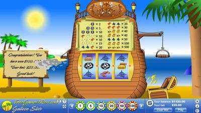 A pirate's life sooner or later finishes with troubles. This rule works even in the game Galleon Slots. A bandit with only one hand had been trying the fortune for many years. There was no man to catch him; there was no ship to overtake his ship. All his treasures were hid on a remote island. Last time he was sailing towards that island a tremendous storm held up his ship, which was full of money and began tossing on the waves. Several hours passed but the nature was still in bad mood. Nothing could discourage the pirate but after a powerful crash his crew was washed overbroad and he found himself on his island, he realized his fortune left him forever.Now he is on the island surrounded by treasures, palms, miles of deep water and ferocious sharks with no chance to leave this place. What an awful end of a pirate's career! But for you this is a start of an absorbing game! From this very moment your adventures begin. You have got a chance to win money in a game with pirate only by pulling a handle. Be careful, he does not want to share his treasures with you.The designers of this game give you an opportunity to enjoy the unique graphics of a likable game space and guarantee the maximum pleasure from the game. Just put a bet, pull the handle and the chest with treasures is yours!